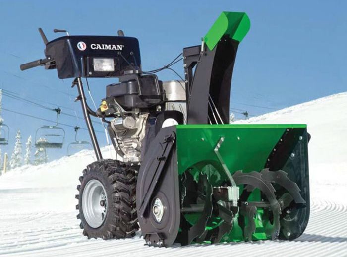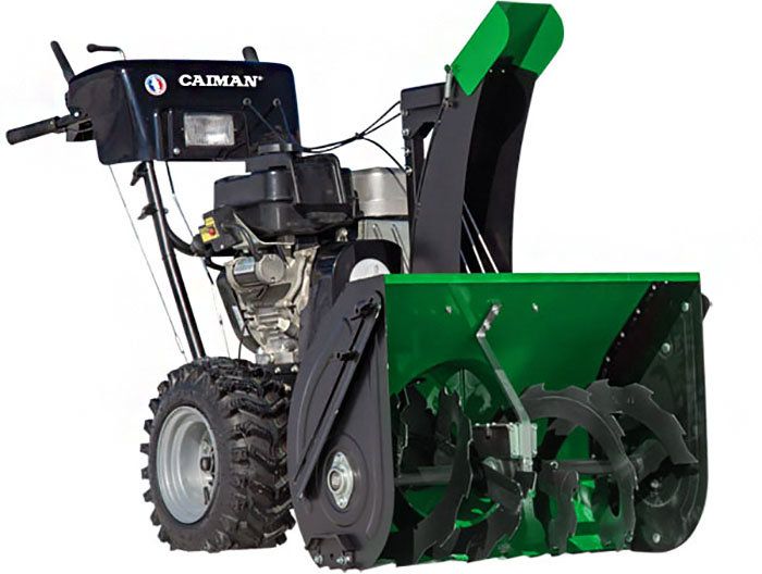Снегоуборочная машина с внедорожными колесами и двигателем Briggs & Stratton (зимняя серия) эффективно справляется с задачей очистки снега. Модель Caiman Valto-24C за один проход убирает снежный покров шириной 71 см и высотой 54 см.