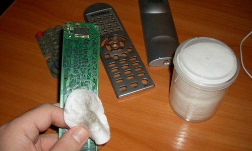 С помощью ватного диска можно легко очистить пульт от телевизора или любое другое устройство с кнопками. Для этого достаточно смочить ватный диск спиртовым раствором.