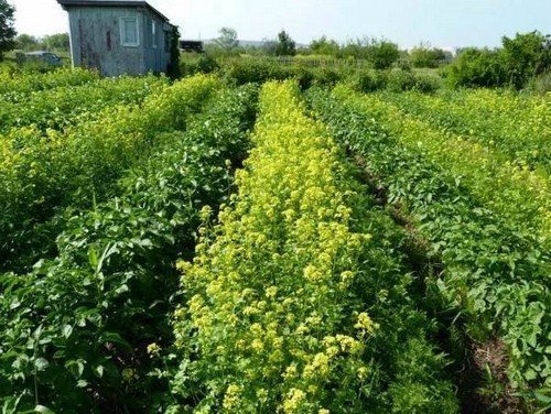 Еще один метод посадки заключается в разделении участка на две половины. Одна часть отводится под сидераты, такие как гречиха, горчица, фацелия, горох, клевер, люцерна, донник, шпинат, сурепка и масличная редька. Вторая половина используется для выращивания картофеля с фасолью. В следующем сезоне участки меняются местами.
