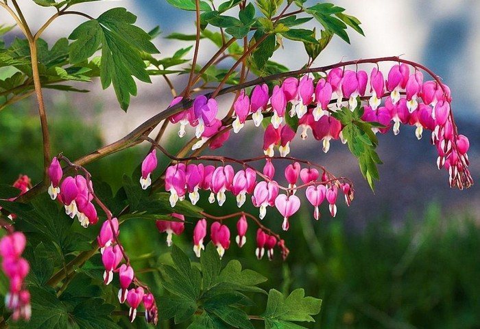 Цветы дицентры имеют оригинальный вид, напоминающий розовые сердечки. В зависимости от сорта, высота этого растения может варьироваться от 30 см до 1 метра. Оптимальное время для посадки дицентры — с конца апреля по середину мая. Растение предпочитает плодородные почвы.