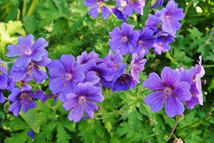 Герань не требует частого полива, так как хорошо переносит засушливые условия. При посадке нескольких растений важно оставлять между ними расстояние не менее 30–40 см, так как со временем кусты будут разрастаться. В подкормках садовая герань не нуждается, однако для поддержания ее декоративного вида рекомендуется периодическая обрезка.