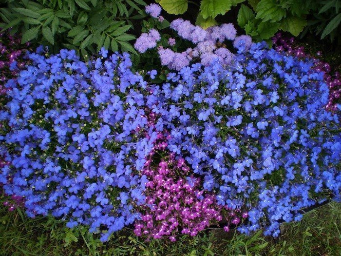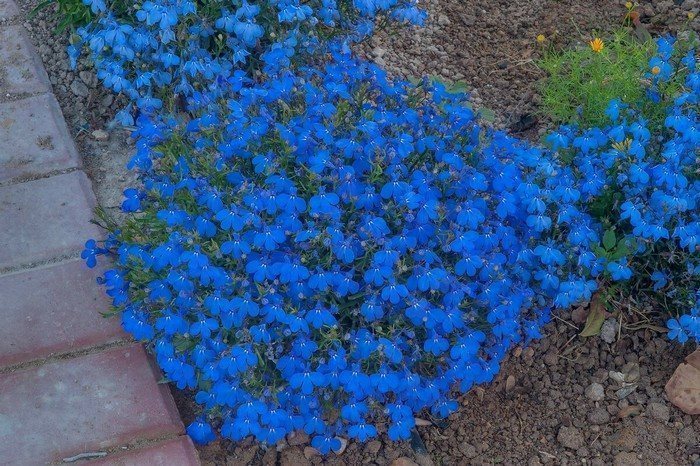 Цветы лобелии имеют яркий голубой цвет и напоминают колокольчики. Особенно впечатляют ампельные сорта с поникающими цветоносами. Эти цветы идеально подходят для контейнерного выращивания: вы сможете легко менять их местоположение, обновляя облик вашего сада.