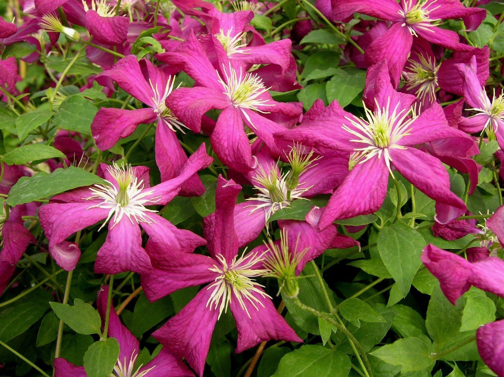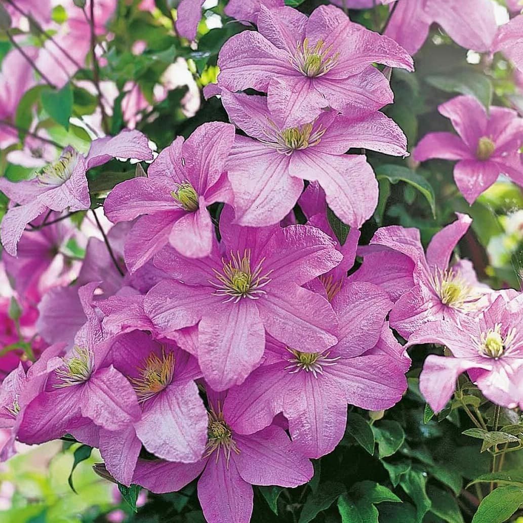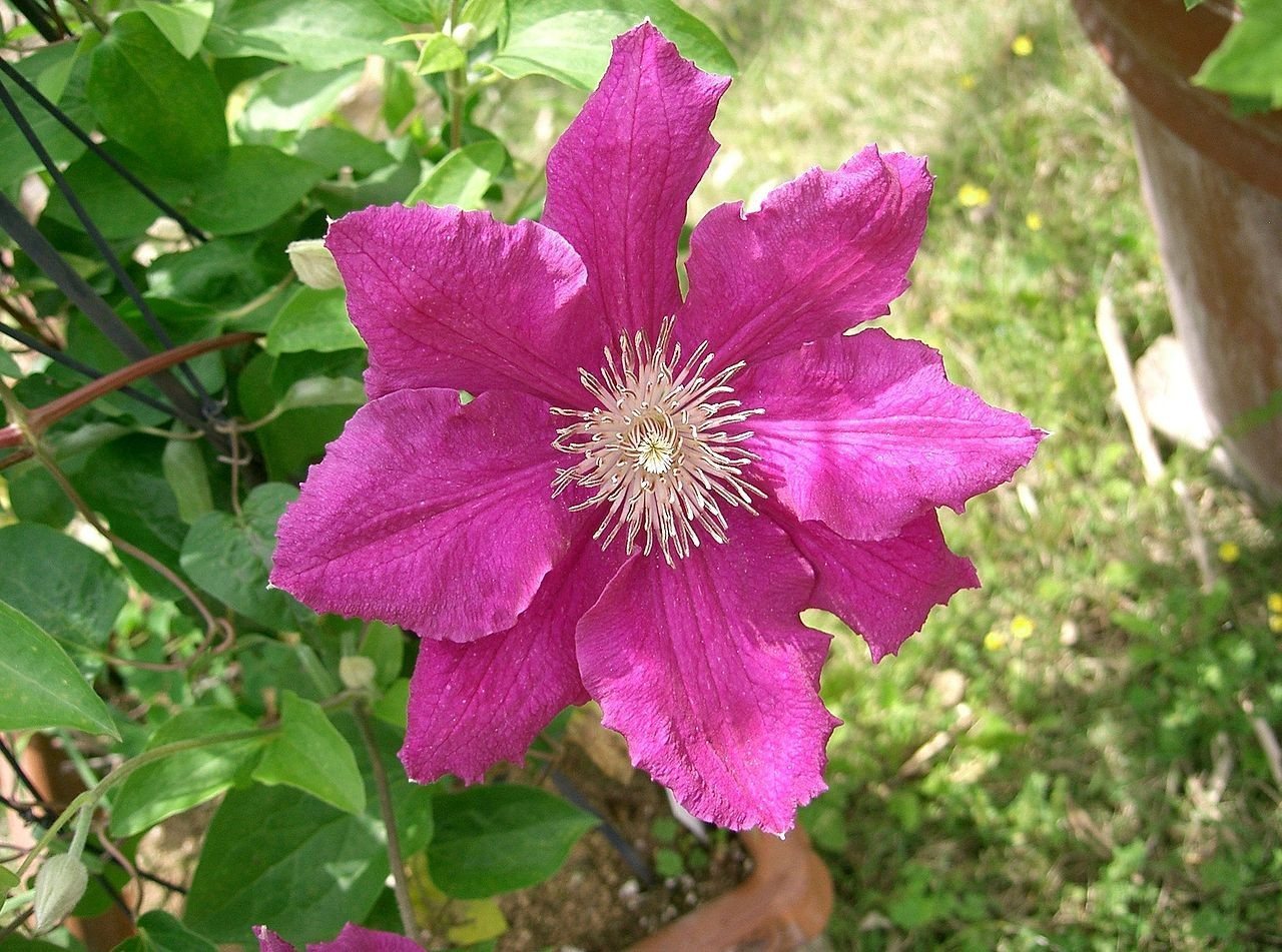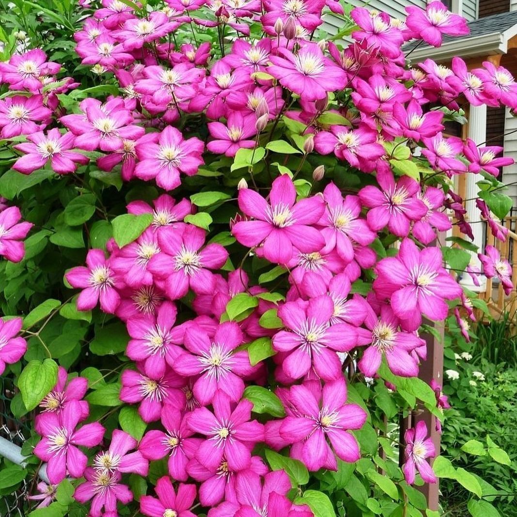 | Клематис Жакмана (Clematis Jackmanii) | Морозостоек, предпочитает солнечное место, обильный полив в засуху, обрезка группы 3 (сильная). | Требуется большой горшок, регулярный полив, подкормки, хорошее освещение, обрезка для формирования куста. |
