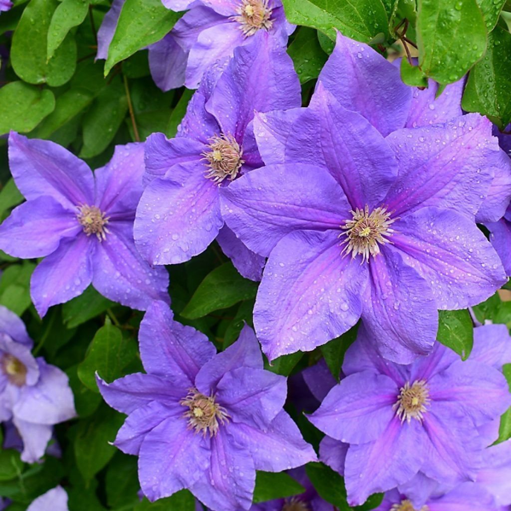 Многолетний травянистый гибрид из группы Патенс может вырастать до 2,5 метров в высоту. Он начинает цвести ранней весной как на молодых, так и на прошлогодних побегах. Листья имеют насыщенный темно-зеленый цвет и заостренную форму, достигая длины до 10 см, с матовой поверхностью.