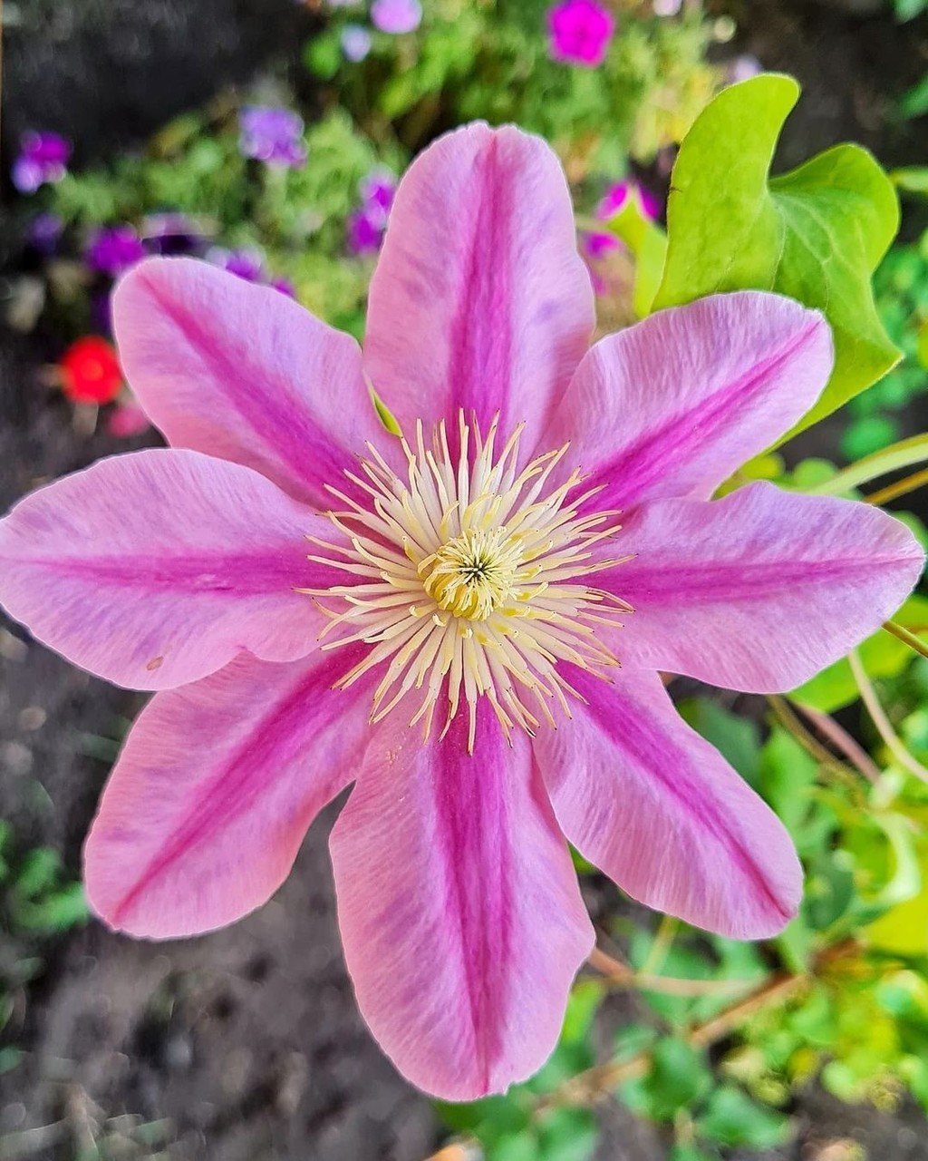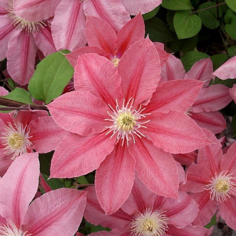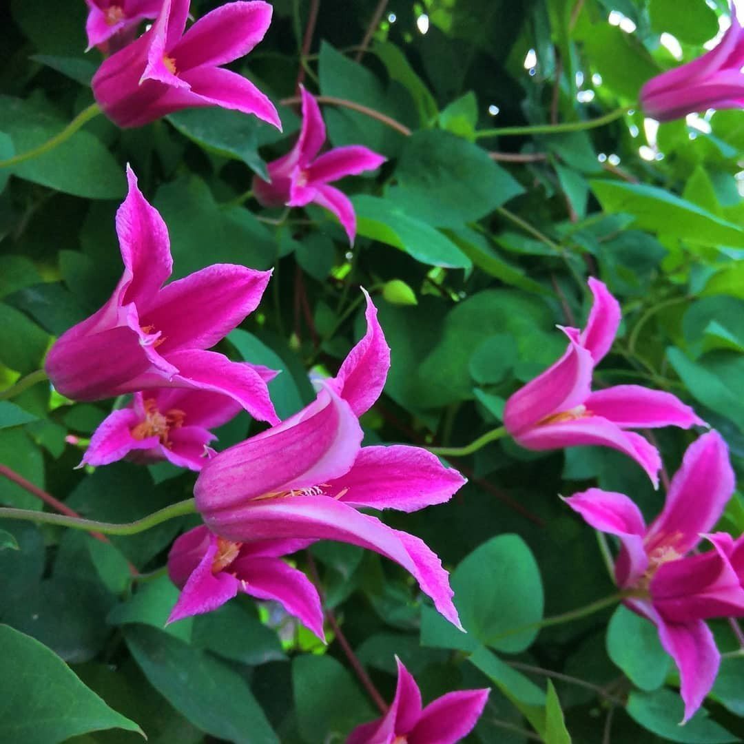 Кустарниковая лиана принадлежит к семейству Витицелла. Ее крупные соцветия, достигающие 20 см в диаметре, распускаются на молодых побегах с июля и продолжают радовать глаз до наступления холодов. Чашелистики состоят из 5-7 округлых лепестков, окрашенных в ярко-розовый цвет с фиолетовыми кончиками.