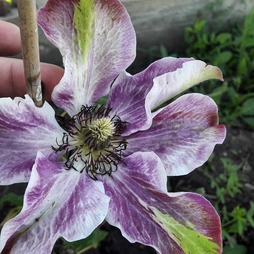 Звездообразные чашелистики, длиной до 18 см, находятся на длинных цветоносах. Лепестки имеют фиолетовый оттенок с волнистыми краями. Второе цветение начинается осенью.