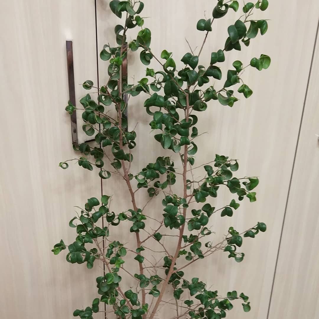 Растение обладает узким цилиндрическим стволом, покрытым плотной темно-серой корой, а его побеги эффектно свисают вниз, образуя волны. Листья имеют овальную форму, с ровными краями и центральной частью, достигая длины до 3 см и ширины 1,5 см. Они ярко-зеленого цвета, а центральная жилка слегка изогнута. В естественных условиях у растения появляются мелкие круглые цветки, однако в домашних условиях добиться их цветения не удастся. В Таиланде этот вид считается священным и окружен множеством положительных примет. Для того чтобы цветок привлек в дом финансовое благополучие, рекомендуется выращивать его в зеленом керамическом горшке и закопать в землю несколько монеток.