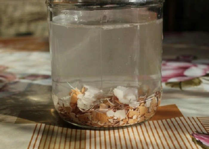 - Скорлупу заливают горячей водой и ставят в теплое темное место для настаивания.