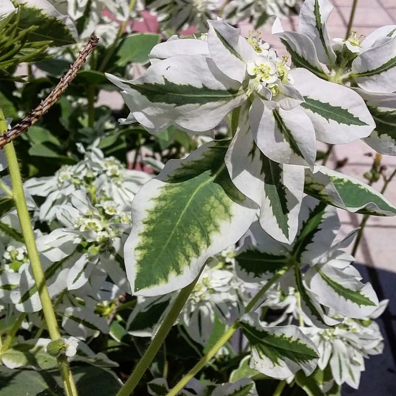 Цветы молочая небольшие и собраны в колосовидные или зонтичные соцветия. Лепестки окрашены в однотонные цвета, включая белый, розовый, красный, пурпурный и желтый.