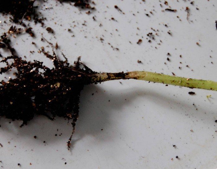 В результате этого стебли начинают гнить и падают, что приводит к гибели рассады. Заболевание имеет тенденцию быстро распространяться. Если несколько сеянцев уже пострадали, их следует немедленно удалить из контейнера, а почву обработать слабым раствором марганцовки или формалина для дезинфекции.