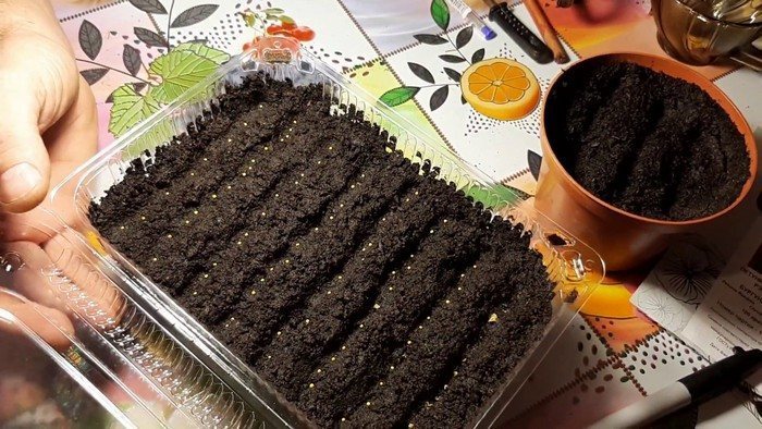 У петуний семена имеют очень мелкий размер, и их нельзя закапывать в грунт. Даже небольшое заглубление на несколько миллиметров может помешать всходам пробиться на поверхность. Поэтому при посеве семян важно следовать определенной технологии: семена следует равномерно распределять по поверхности почвы рядами с расстоянием между ними 2-3 см.