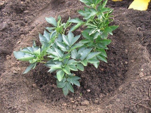 При пересадке разделённый куст помещается в яму глубиной 0,5 метра, дно которой следует выложить четырёхсантиметровым дренажным слоем из песка, гравия или керамзита. Половину ямы заполняют компостом или навозом, а оставшееся пространство заполняется дерном с добавлением золы.