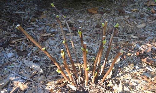 В процессе обрезки листья и стебли следует максимально укоротить с помощью специального инструмента (можно оставить небольшие стебли над почками роста). Для предотвращения заболеваний удаленные части растений рекомендуется сжигать.