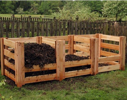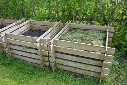Компостную кучу можно размещать прямо на земле, однако оптимальным вариантом будет создание большого деревянного ящика со стенками, в которых предусмотрены зазоры в 2-3 см между досками.