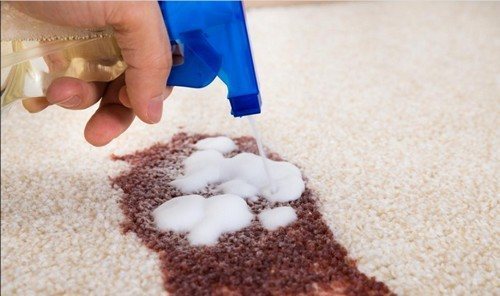 - Распылите полученный раствор по всему ковру, избегая сильного намокания. Ковер должен оставаться слегка влажным.