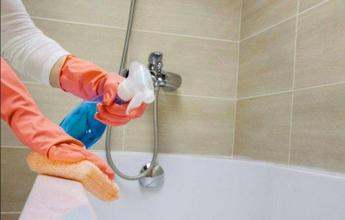 Из-за высокой жесткости воды на стенках ванной может образовываться характерный желтоватый налет, который бывает трудно удалить. Многие чистящие средства содержат абразивные частицы, способные повредить поверхность. Для безопасного очищения рекомендуется использовать резиновые перчатки: