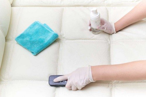 - Перелейте получившуюся смесь в распылитель и обработайте проблемные участки дивана.