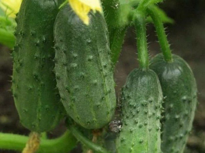 Плоды формируются в кистях. Они имеют тонкую кожицу, покрытую множеством бугорков темно-зеленого оттенка. Мякоть отличается сочностью и хрустящей текстурой, без горечи, с кисло-сладким вкусом. Для достижения хорошего урожая необходимы регулярные подкормки и полив. У этого гибрида наблюдается высокая устойчивость к болезням.