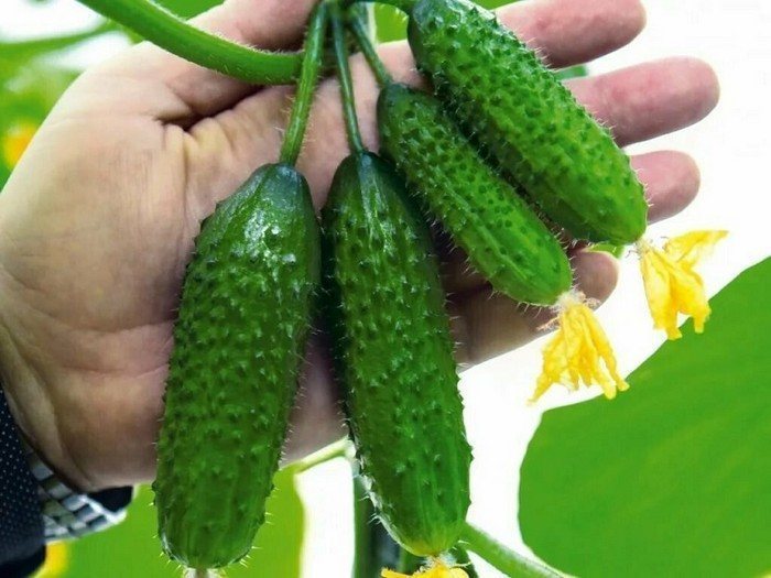 Урожай собирают в момент полного созревания. Даже в сложные погодные условия можно получить достойный результат. Огурцы можно использовать в свежем виде, а также консервировать, солить и мариновать.