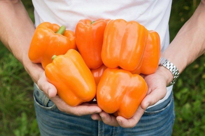 Гибридный перец с ярко-оранжевыми плодами кубической формы, достигающими веса до 250 г. Толщина стенок часто превышает 10 мм. Этот сорт идеально подходит для выращивания в любых регионах страны. Плоды созревают на ранних сроках. «Оранжевое чудо» хорошо переносит низкие температуры, что позволяет его культивировать в открытом грунте. Садоводы ценят этот сорт за его высокую продуктивность: с одного квадратного метра можно собрать до 10 кг урожая.