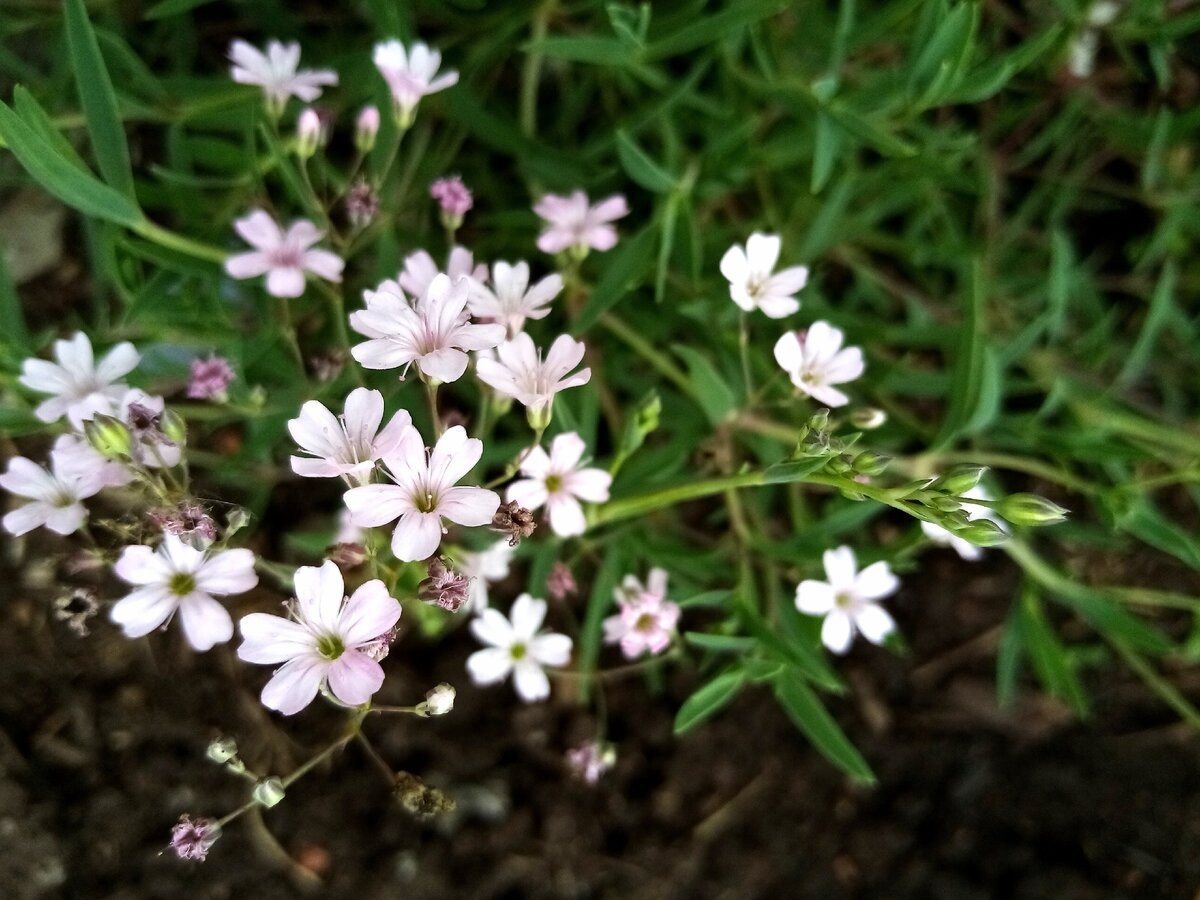 Низкорослый однолетний сорт растения образует компактный шаровидный куст с прямыми стеблями. Листья небольшие, линейной формы, насыщенного зеленого цвета. Цветки мелкие, собираются в метельчатые соцветия. Стенная гипсофила радует цветением на протяжении всего летнего сезона. Она предпочитает солнечные места, допускающие небольшую тень. Для ее роста подойдет легкая супесчаная или питательная суглинистая почва, хорошо дренированная и с добавлением извести. Высевать растение рекомендуется между более высокими культурами. Наиболее известный сорт стенной гипсофилы — Gipsy. Это обильно цветущее однолетнее растение, которое можно высаживать в контейнерах. Цветы этого сорта варьируются от белых до нежно-розовых оттенков. Растение нуждается в регулярном поливе.