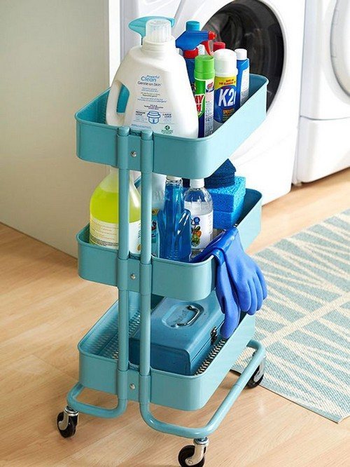 Чтобы обеспечить удобство в перемещении уборочных средств, стоит рассмотреть возможность приобретения тележки или корзины на колесиках. Такая тележка может стать многофункциональным хранилищем для ваших принадлежностей, особенно если у вас нет выделенного места для их хранения. Однако и для этой тележки потребуется найти подходящее место.