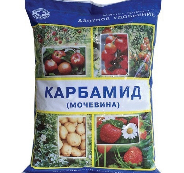 Удобрение обладает высокой концентрацией азота (46%) и представлено в виде мелких белых гранул, не имеющих запаха и легко растворяющихся в воде. Его применяют в начале лета для подкормки различных овощных и плодовых культур. Это средство способствует укреплению иммунной системы растений.