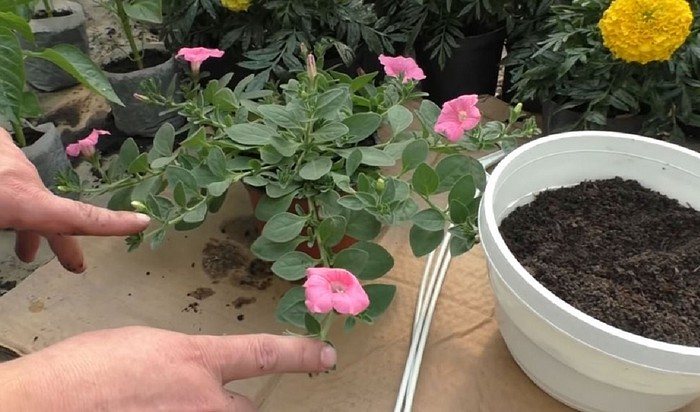 В конце сентября петунию, выращенную в открытом грунте, следует пересадить в горшок, который затем помещают в дом или зимнюю теплицу. При этом побеги обрезают, оставляя пеньки высотой 4-5 см. Грунт, в который будет пересажено растение, должен быть богатым питательными веществами и рыхлым.
