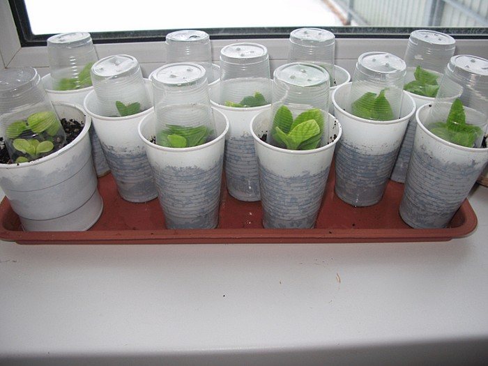 Песок можно заменить вермикулитом. Смесь следует обеззаразить, пролив кипятком или раствором марганцовки, после чего заполнить ею стаканчики. В каждый стаканчик можно высадить по 3-4 растения с расстоянием в 2-3 см.