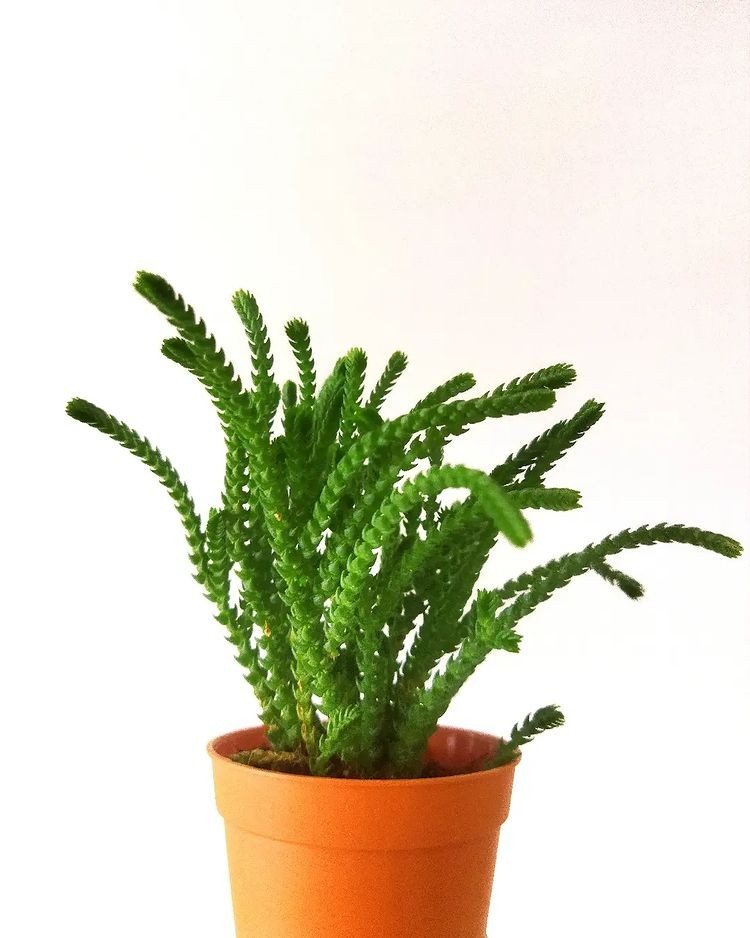 Отмечается асимметричный рост стеблей. Внешне растение напоминает кактус. Листья имеют треугольную форму и покрыты чешуйками. Ствол тонкий, достигает толщины до 0,5 см вместе с листьями.