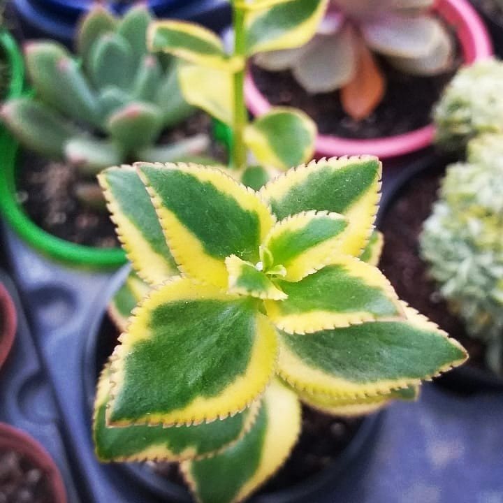 Листья обладают ярким желто-красным оттенком с легкими светлыми прожилками. В условиях недостатка света они могут приобретать зеленый цвет. Чтобы сохранить их оригинальную окраску, эксперты советуют размножать этот вид исключительно вегетативным методом.