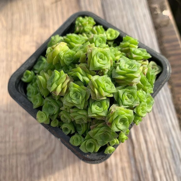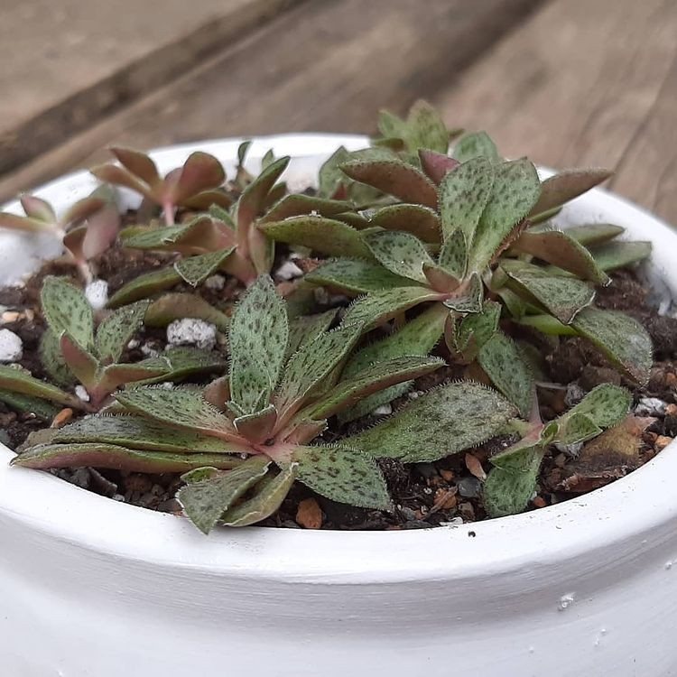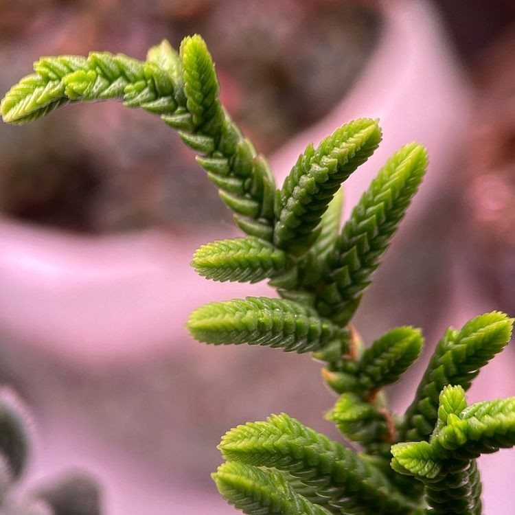 Растет постепенно. Нуждается в тщательном уходе и надежном дренировании. Листья небольшие, насыщенного зеленого цвета с красной каймой по краям. Широко применяется для оформления мини-садов.