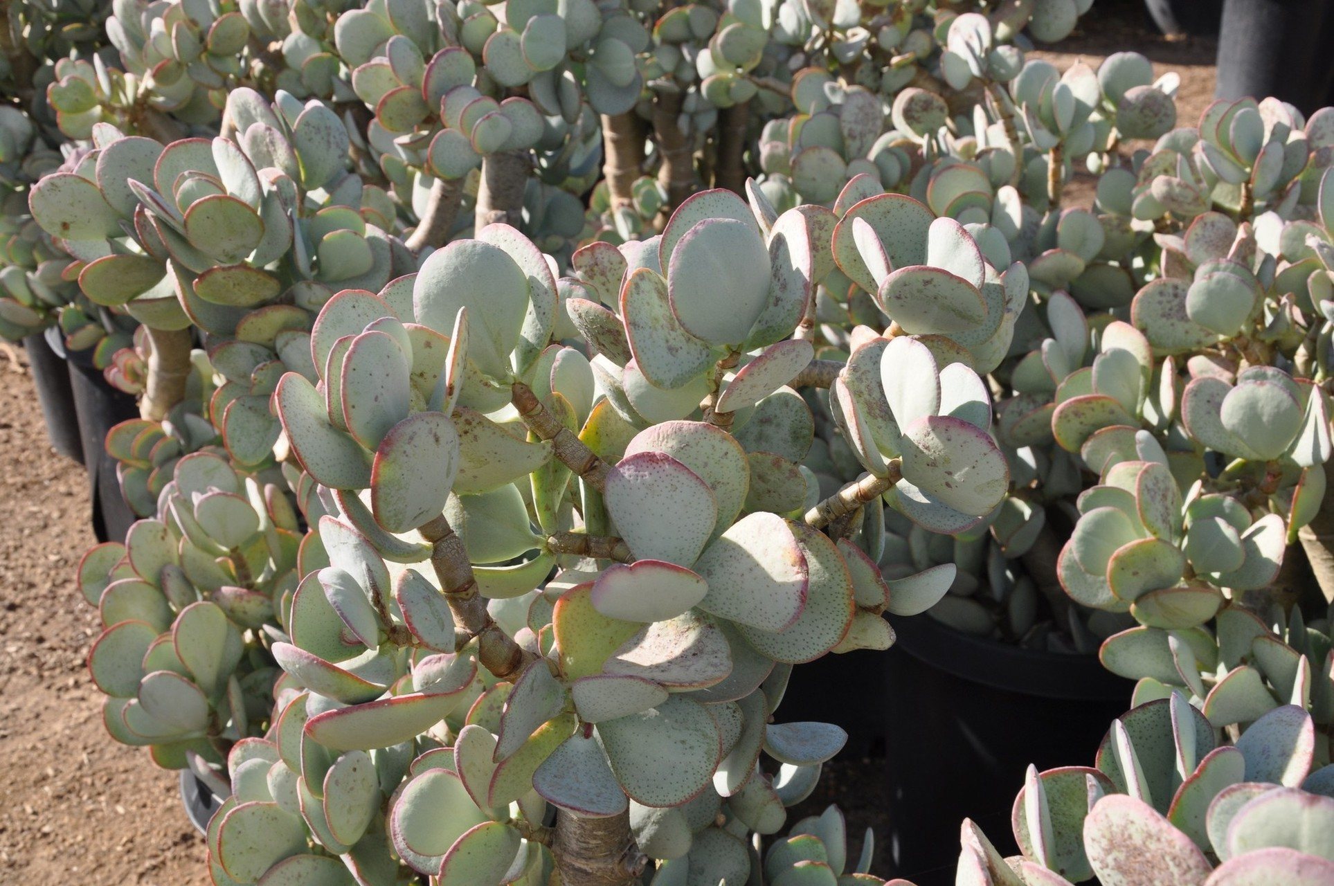 Классическая форма денежного дерева. В процессе роста оно может вырасти до 1,5 метров в высоту. Листья имеют продолговатую форму и достигают длины до 7 см. Нижняя сторона листа окрашена в красный цвет, а верхняя – в голубовато-серый. Поверхность листьев обладает глянцевым блеском. В домашних условиях цветение происходит крайне редко.