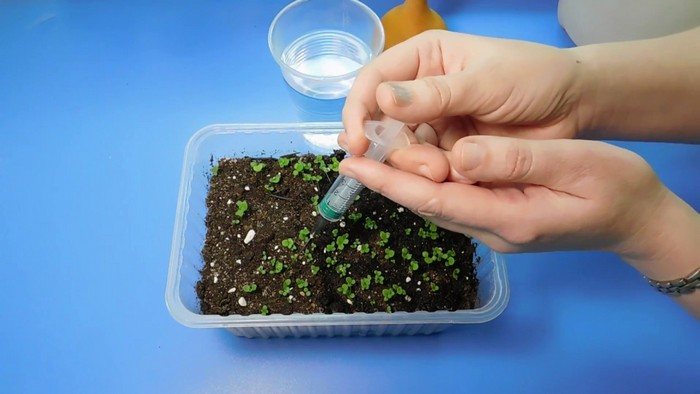 Пока растения еще маленькие, рекомендуется использовать шприц без иглы или небольшую спринцовку для полива. Эти инструменты позволяют точно подавать воду в область корней. Лейку можно использовать только после того, как на рассаде появится 5-6 настоящих листьев.