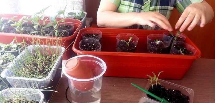 На следующий день, используя небольшую лопатку или чайную ложку, аккуратно извлекайте сеянцы из почвы, стараясь сохранить ком земли, и пересаживайте их в индивидуальные контейнеры, такие как пластиковые стаканы объемом 0,5 литра.