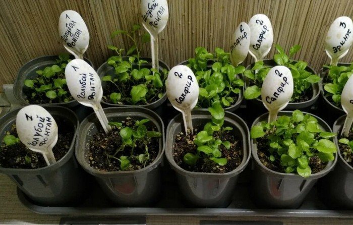 Кто бы мог предположить, что одноразовые пластиковые ложки и ножи могут служить отличными маркерами для рассады? Тем не менее, этот метод обрел своих поклонников, которые отмечают его множество плюсов. Пластиковые изделия легко доступны и стоят недорого. Их просто подписать, а затем сохранить до следующего сезона. Концы ложек без труда втыкаются в землю, что делает их удобными для переноса из одной емкости в другую во время пикировки.