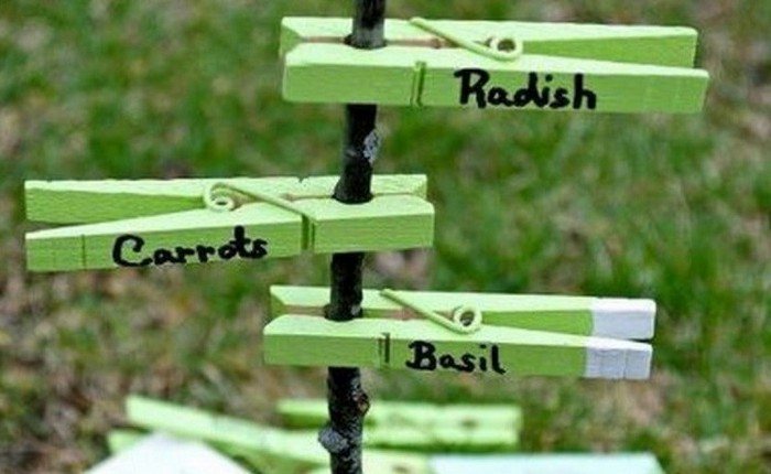 Деревянная прищепка с надписью может быть прикреплена к контейнеру или растению. Иногда такие прищепки окрашивают в яркие цвета с помощью акриловой краски. Это помогает садоводам легче ориентироваться в рассаде и саженцах.