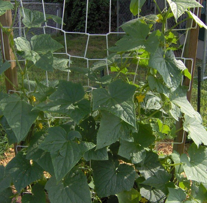 После этого куст начинает развивать боковые побеги. Их верхушки также прищипывают, оставляя по два листа и две завязи. С побегами третьего порядка действуют аналогично. В дальнейшем кусту не следует позволять чрезмерно разрастаться. Побеги четвертого порядка полностью удаляют. Оптимально выращивать пчелоопыляемые сорта на сетке, что обеспечит хорошую циркуляцию воздуха и достаточное освещение для куста.