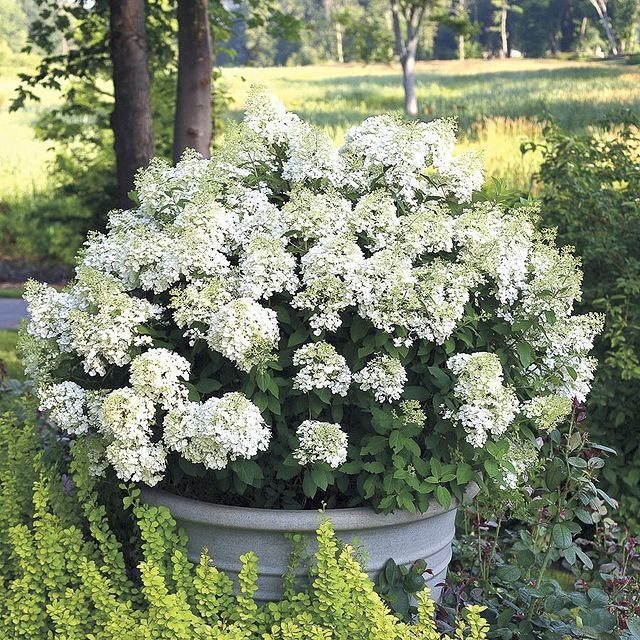 Это компактное растение славится своими великолепными цветами, которые в течение лета несколько раз меняют свою окраску. Его можно с успехом высаживать как в открытом грунте, так и в контейнерах. Высота этого кустарника достигает примерно 1 метра. Он имеет хорошо развитую поверхностную корневую систему, шарообразную крону и плотные пирамидальные соцветия. Цветы изначально белые, но через три недели после начала цветения они приобретают розовый оттенок.