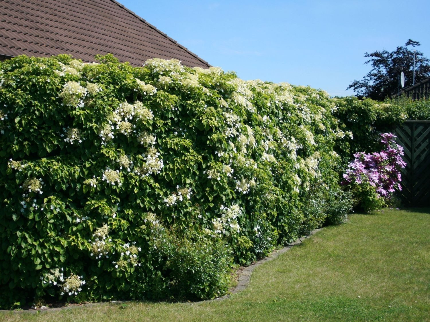 | Гортензия черешковая (Hydrangea petiolaris) | Вьющаяся гортензия, способная подниматься по опорам до 10-15 метров. Имеет плоские, кружевные соцветия белого цвета. | Предпочитает полутень или тень. Нуждается в опоре для роста. Почва должна быть влажной и плодородной. Обрезка минимальна, в основном для удаления поврежденных или неправильно растущих побегов. |
