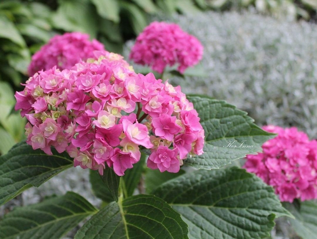 - гортензия цветет весной, радуя глаз своим великолепием до первых заморозков;