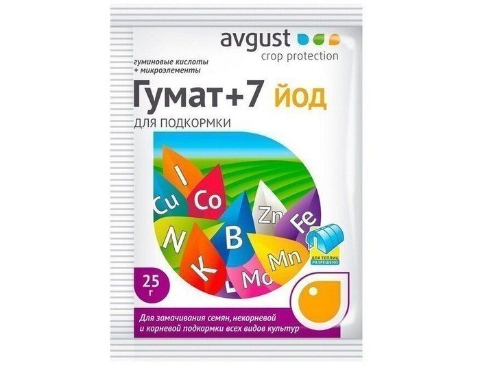 В состав препарата Гумат +7 йод входит дополнительный элемент – йод, который способствует защите растений от болезней и вредителей. Регулярная обработка культур помогает предотвратить грибковые инфекции.