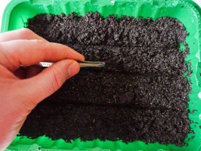 Излишки воды будут быстро вытекать через дренажные отверстия и одновременно испаряться с поверхности. Это поможет защитить сеянцы от заболевания «черной ножкой». Эта болезнь является серьезной угрозой для рассады, и ее возникновение часто связано с избытком влаги. Посев осуществляется традиционным способом — в бороздки, при этом семена заглубляют на 0,5 см.