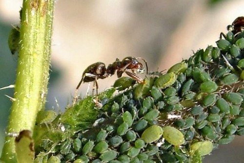 Практически всегда рядом с тлей можно заметить муравьев. Ошибочно полагать, что муравьи питаются тлей, помогая людям в борьбе с ними.