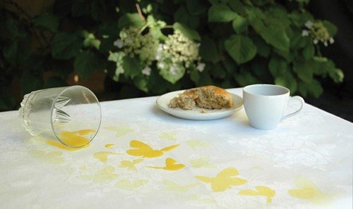- Если пятно на скатерти свежее, попробуйте удалить его с помощью сока лука или сыворотки из простокваши, а затем постирайте в теплой воде спустя некоторое время.