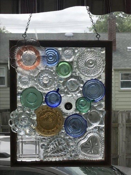 Такой коллаж может стать украшением не только вашего интерьера, но и сада или фасада дома. Часто подобные изделия используют для оформления оконных проемов.