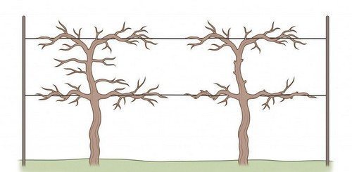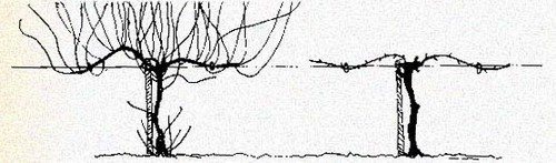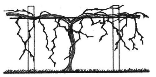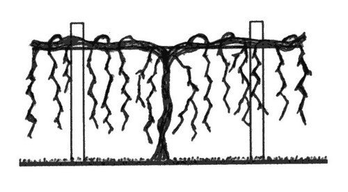 При этом на каждом из рукавов оставляют по 2-3 лозы. Общее количество почек не должно превышать 50. На более тонких стволах это число следует уменьшить.