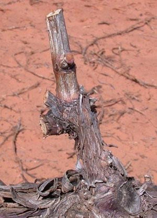 Многолетний куст винограда представляет собой крепкое, зрелое и плодоносное растение. С него необходимо удалить старые побеги, листву и засохшую лозу. Маленькие и слабые побеги, которые можно определить по диаметру (сравнимому с мизинцем), часто имеют трещины и плохо держатся за ствол.