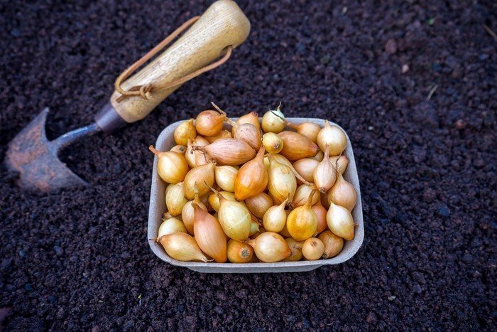 Качество посадочного материала важнее его стоимости, поэтому лучше выбрать качественный севок. Идеальный посадочный материал должен быть небольшим, плотным, с целой, гладкой и блестящей оболочкой, которая плотно прилегает к луковице. Луковки должны быть сухими и небольшими. Исследования показывают, что чем больше размер севка, тем выше вероятность, что он даст стрелки. Оптимальный диаметр головки составляет 1-1,5 см.