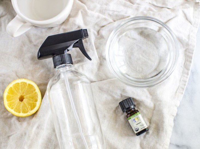 Это простой и эффективный рецепт. Вам понадобится: — 1/4 стакана дистиллированного белого уксуса, — 1/2 чайной ложки жидкого средства для мытья посуды, — 2 стакана воды, — несколько капель вашего любимого эфирного масла (по желанию). Просто добавьте все ингредиенты в пульверизатор и встряхните перед использованием.